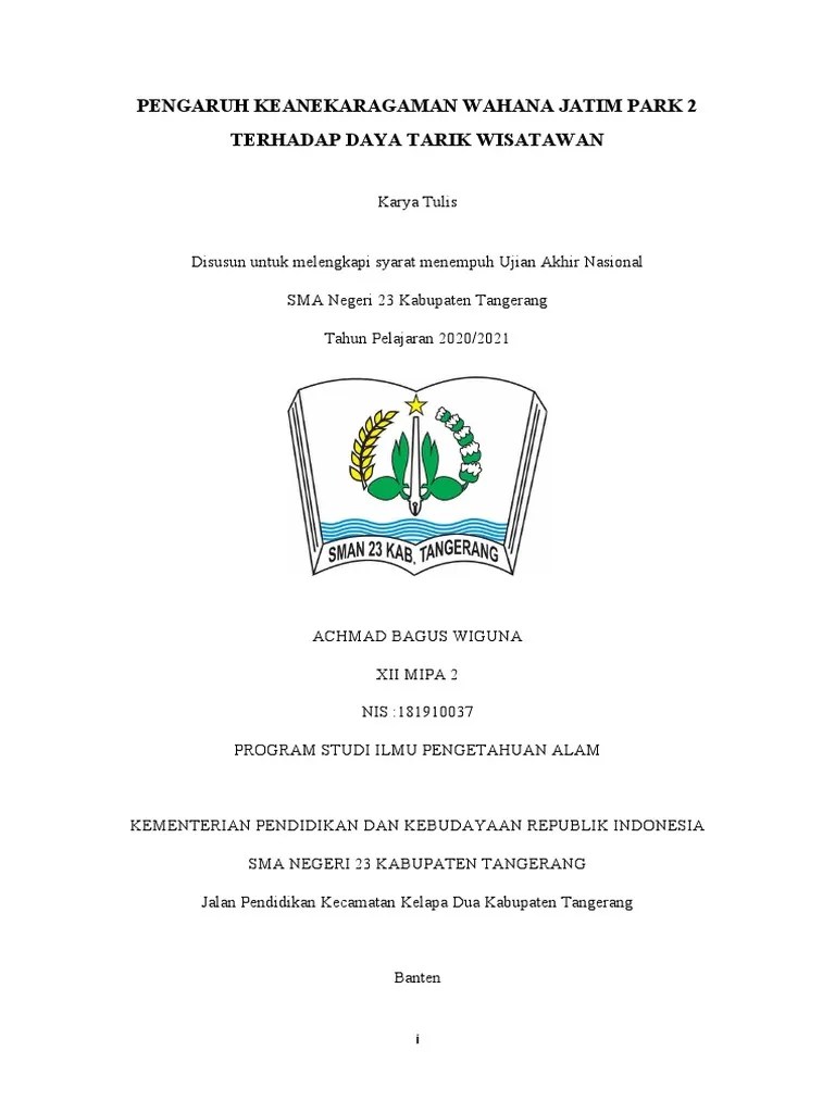 Contoh Karya Tulis Jatim Park 2 : Karya Tulis Nilai Nilai Estetika Ragam Hias Jatim Park I Materi Tugas Tugas - Topik karya tulis yang dibahas adalah kunjungan wisata ke jatim park ii dan didalamnya dilengkapi dengan dokumentasi pada obyek tersebut.. Waktu di jatim park 2 kita dapat mengamati berbagai spesies hewan baik. Penutup kesimpulan sebagai akhir uraian laporan karya tulis ini penulis memberikan . Kegiatan karya wisata ini diharapkan dapat memberi pengetahuan, pengalaman,. Akhirnya, penulis berharap semoga karya ini bermanfaat bagi penulis maupun pembaca. Jawa timur park 2 dibangun di wilayah malang jatim park 2 .
